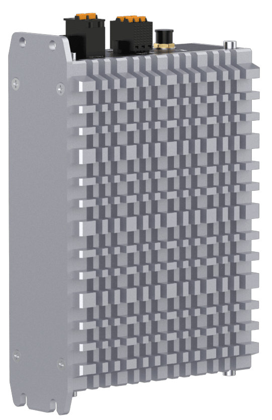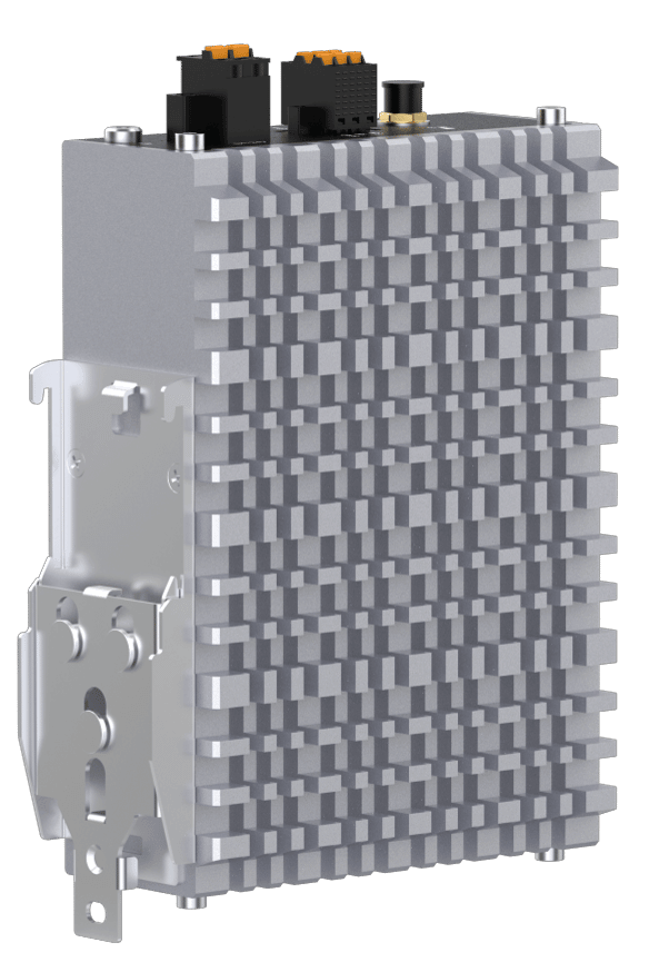 Compact enough to fit alongside DIN rail equipment in standard control cabinets. The aluminium-magnesium chassis dissipates heat passively without fans.