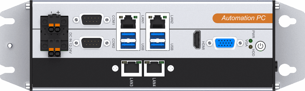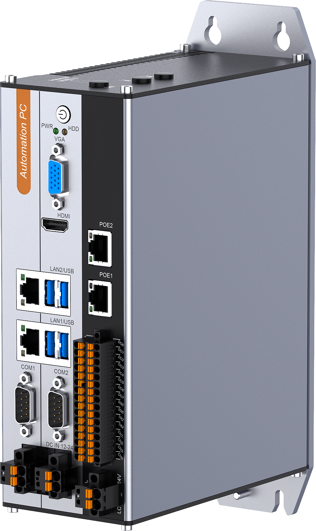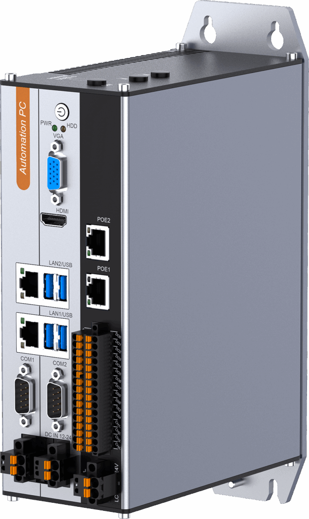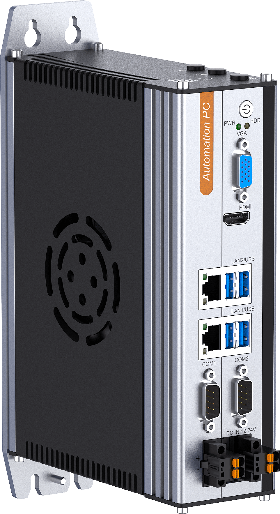 Active fan cooling handles the sustained high-CPU workloads that a fanless unit cannot. The embedded fan is rated for industrial environments, and the aluminium-magnesium chassis acts as a secondary heatsink. Built for 24/7 operation in factory conditions without thermal throttling.