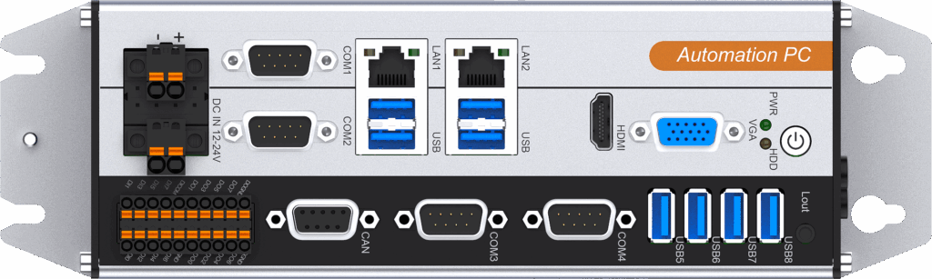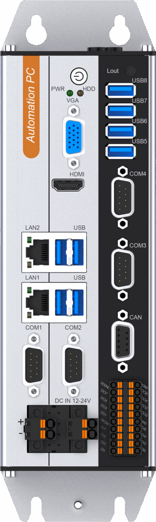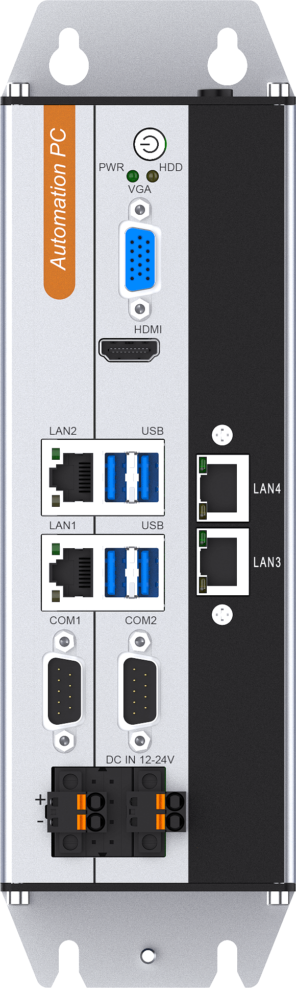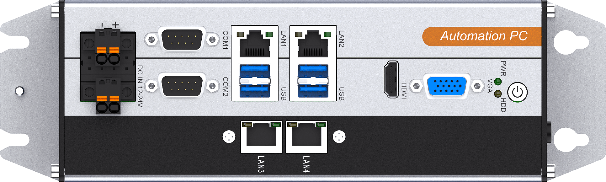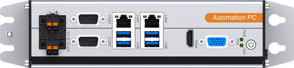 Active fan cooling handles the sustained high-CPU workloads that a fanless unit cannot. The embedded fan is rated for industrial environments, and the aluminium-magnesium chassis acts as a secondary heatsink. Built for 24/7 operation in factory conditions without thermal throttling.